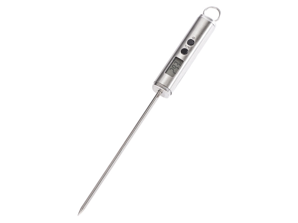Кулинарный термометр из нержавеющей стали не даст вам ошибиться во время готовки. С ним все блюда будут поданы в нужной кондиции, а стейки — прожарены ровно настолько, насколько вам нужно. Работает от батарейки LR44 (в комплекте).