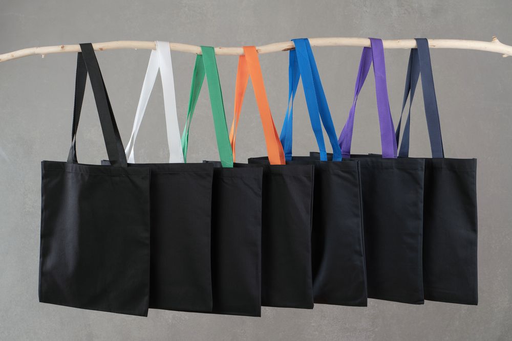 Холщовая сумка BrighTone, черная с оранжевыми ручками