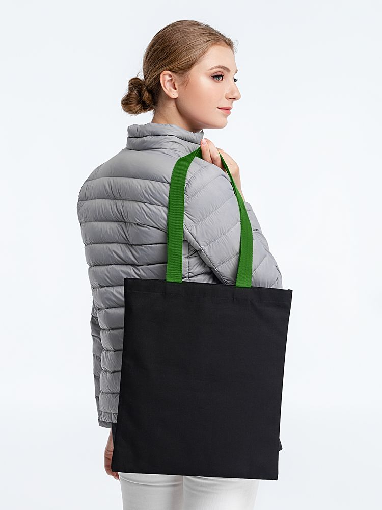 Холщовая сумка BrighTone, черная с зелеными ручками