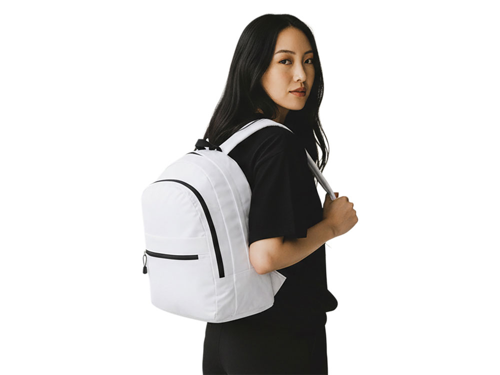 Стильный городской рюкзак с богатыми возможностями для индивидуализации. Два вместительных отделения на молнии. Внешний карман на молнии. Лямки регулируются по длине. Термотрансфер (1 цвет (белые изделия)) на данный товар осуществляется бесплатно. Оплачивается только настройка оборудования в размере 8200 рублей на весь тираж.