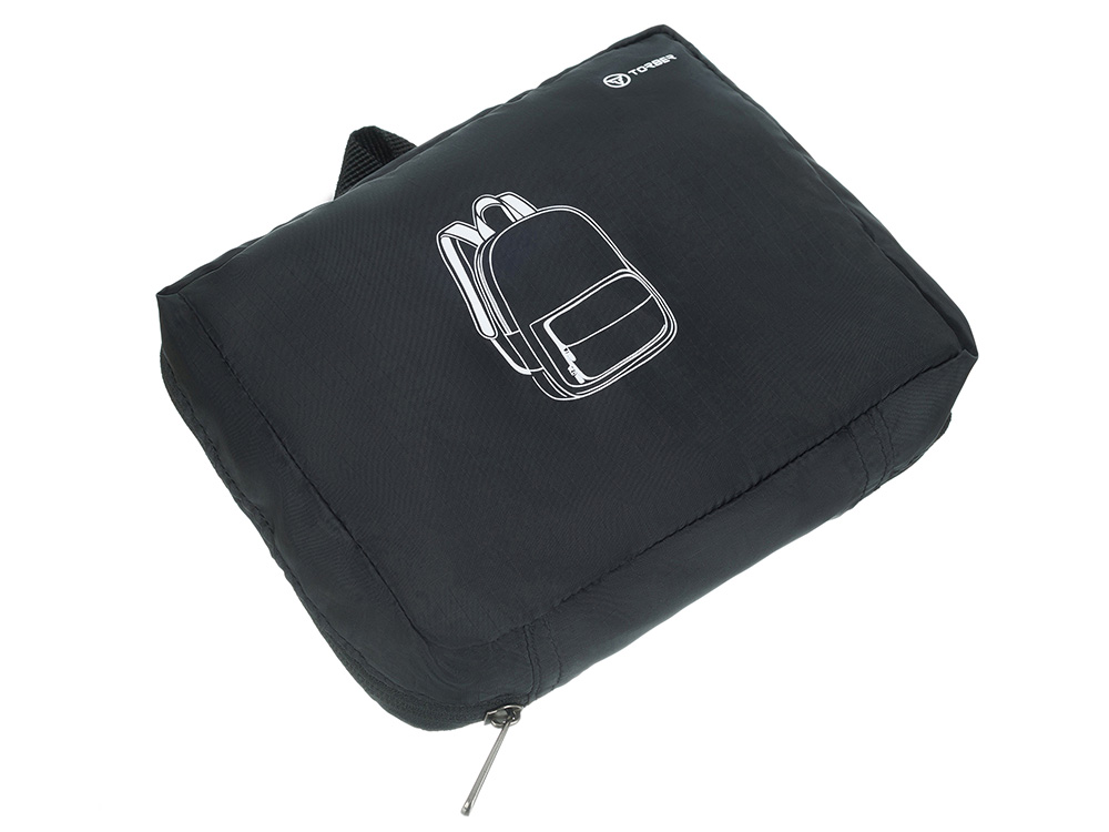Рюкзак складной TORBER, черный, полиэстер, 49x33x12 см