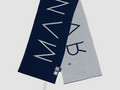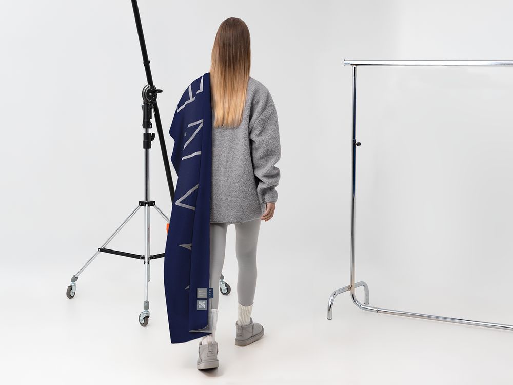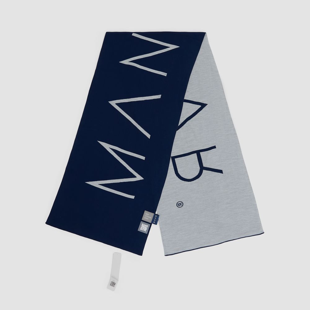 Двухцветный длинный шарф Bereg открывает дополнительное пространство для маневра. Можно добавить в образ стиля, просто накинув шарф на шею или обернув вокруг нее один раз, оставив свободными спереди оба конца с контрастной надписью.