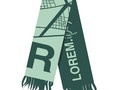 Шарф с вывязанным логотипом и индивидуальным рисунком в фирменной цветовой гамме.