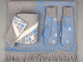 Модель: классический двуслойный шарф с жаккардовым узором в 2-3 цвета. Шарф вяжется сплошным полотном, затем его складывают пополам и сшивают так, что обе его стороны получаются лицевыми, а изнанка не видна. Это позволяет вывязывать на разных сторонах разные узоры.