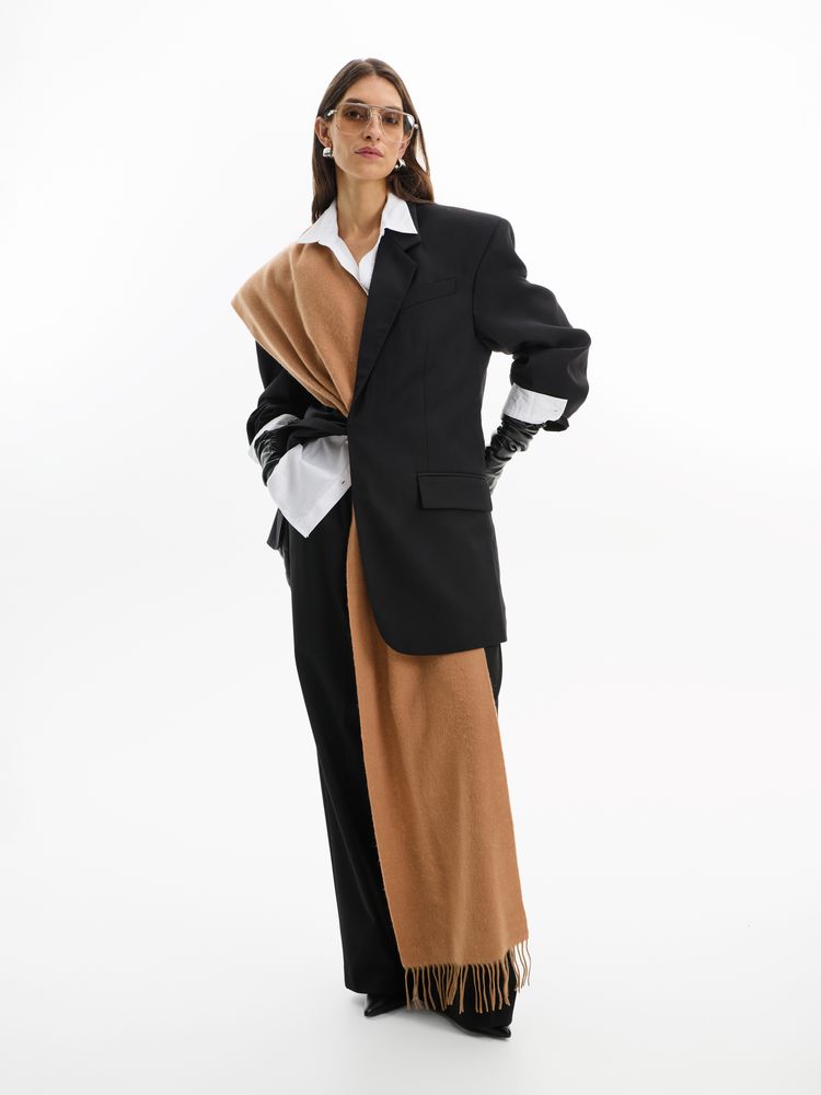 Шарф с будто бы валяной поверхностью — достаточно плотный и сдержанный, чтобы стать финальным штрихом в выверенном комплекте.