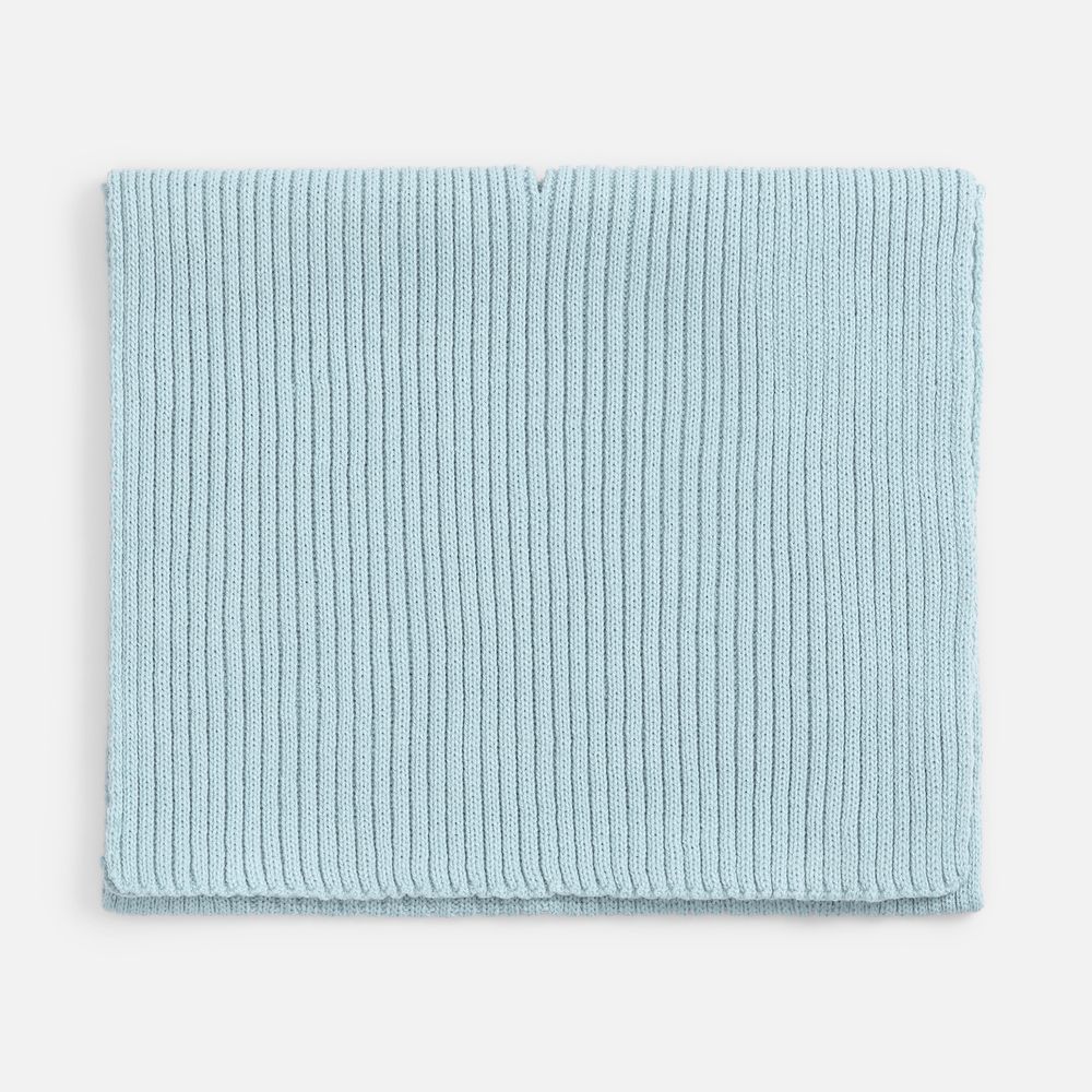 Однослойный шарф фактурной вязки с отверстием для быстрого и удобного завязывания.