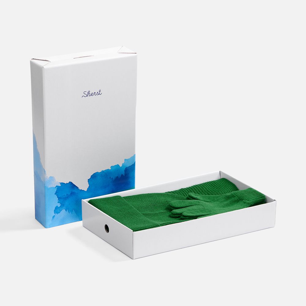 Удлиненная шапка с широким отворотом и фактурной вязкой мягко облегает голову, создавая элегантный силуэт. Широкий шарф с выразительным рельефом позволяет экспериментировать с драпировками, добавляя образу объем и динамику. Перчатки с аккуратной резинкой на манжете обеспечивают идеальную посадку и тактильный комфорт.