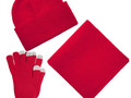 В комплект входят двухслойная шапка с регулируемым отворотом и легкий однослойный шарф из мягкой акриловой пряжи, сохраняющие тепло и защищающие от ветра, а также эргономичные перчатки со специальными токопроводящими волокнами на кончиках пальцев, позволяющие свободно пользоваться смартфоном даже в холодную погоду. Универсальная цветовая гамма и лаконичный дизайн делают набор органичным дополнением к любой верхней одежде.