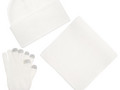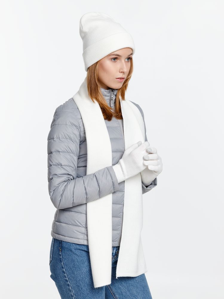 В комплект входят двухслойная шапка с регулируемым отворотом и легкий однослойный шарф из мягкой акриловой пряжи, сохраняющие тепло и защищающие от ветра, а также эргономичные перчатки со специальными токопроводящими волокнами на кончиках пальцев, позволяющие свободно пользоваться смартфоном даже в холодную погоду. Универсальная цветовая гамма и лаконичный дизайн делают набор органичным дополнением к любой верхней одежде.