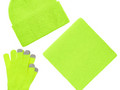 В комплект входят двухслойная шапка с регулируемым отворотом и легкий однослойный шарф из мягкой акриловой пряжи, сохраняющие тепло и защищающие от ветра, а также эргономичные перчатки со специальными токопроводящими волокнами на кончиках пальцев, позволяющие свободно пользоваться смартфоном даже в холодную погоду. Универсальная цветовая гамма и лаконичный дизайн делают набор органичным дополнением к любой верхней одежде.