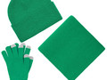 В комплект входят двухслойная шапка с регулируемым отворотом и легкий однослойный шарф из мягкой акриловой пряжи, сохраняющие тепло и защищающие от ветра, а также эргономичные перчатки со специальными токопроводящими волокнами на кончиках пальцев, позволяющие свободно пользоваться смартфоном даже в холодную погоду. Универсальная цветовая гамма и лаконичный дизайн делают набор органичным дополнением к любой верхней одежде.