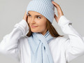 В набор входят удобный шарф с технологичным отверстием для быстрого завязывания, шапка с двойным отворотом и теплые двухслойные варежки с широкой манжетой. Все изделия связаны из акриловой пряжи, отличаются практичностью и элегантной простотой.