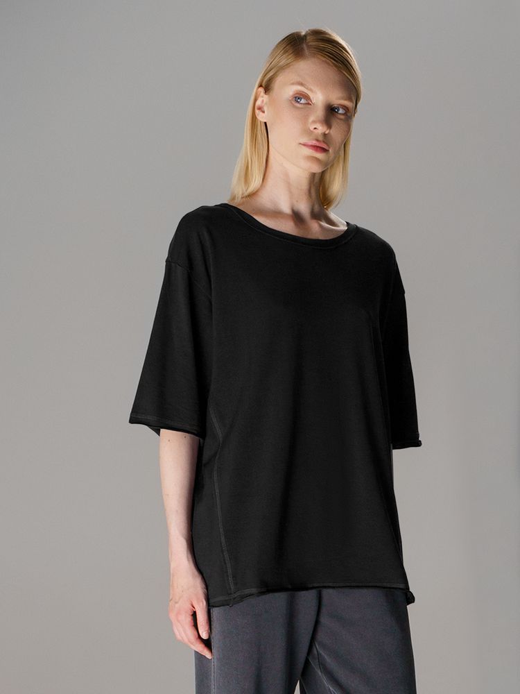 Футболка унисекс свободной посадки Vozduh создана для тех, кто следит за трендами и ценит комфорт. Необработанные края рукавов и низа изделия добавляют ему оригинальности и легкой небрежности, а боковые вставки создают притягательный летящий силуэт.