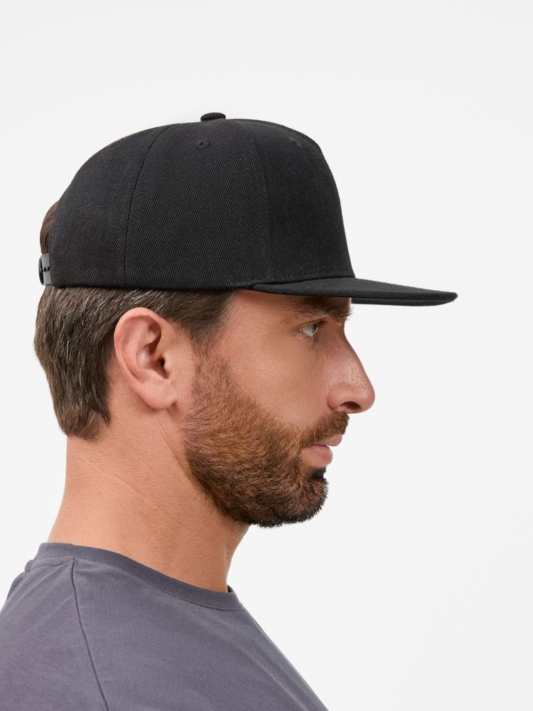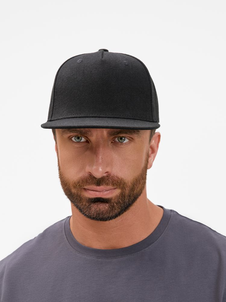 Бейсболка с прямым козырьком из плотного фактурного полиэстера отлично держит форму и не выцветает.