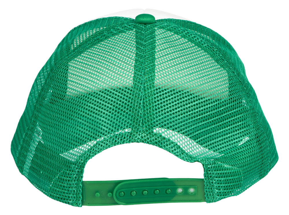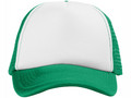 Кепка из 5 панелей Trucker. Оригинальная кепка на окружность головы 58 см с передней поролоновой частью, пластиковой сеткой сзади и пластиковой застежкой. Эта кепка полностью соответствует требованиям к соединениям AZO, формальдегиду и ПХФ. Полиэстер и поролон.