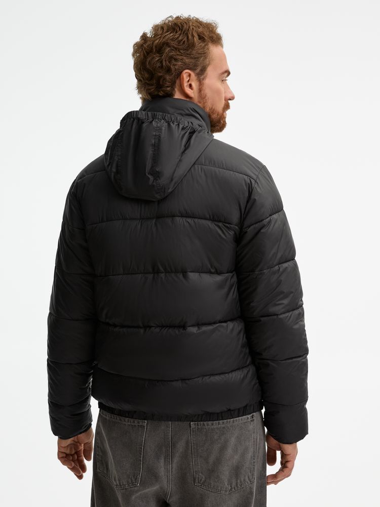 - Капюшон без подкладки убирается в воротник и плотно фиксируется на потайные кнопки