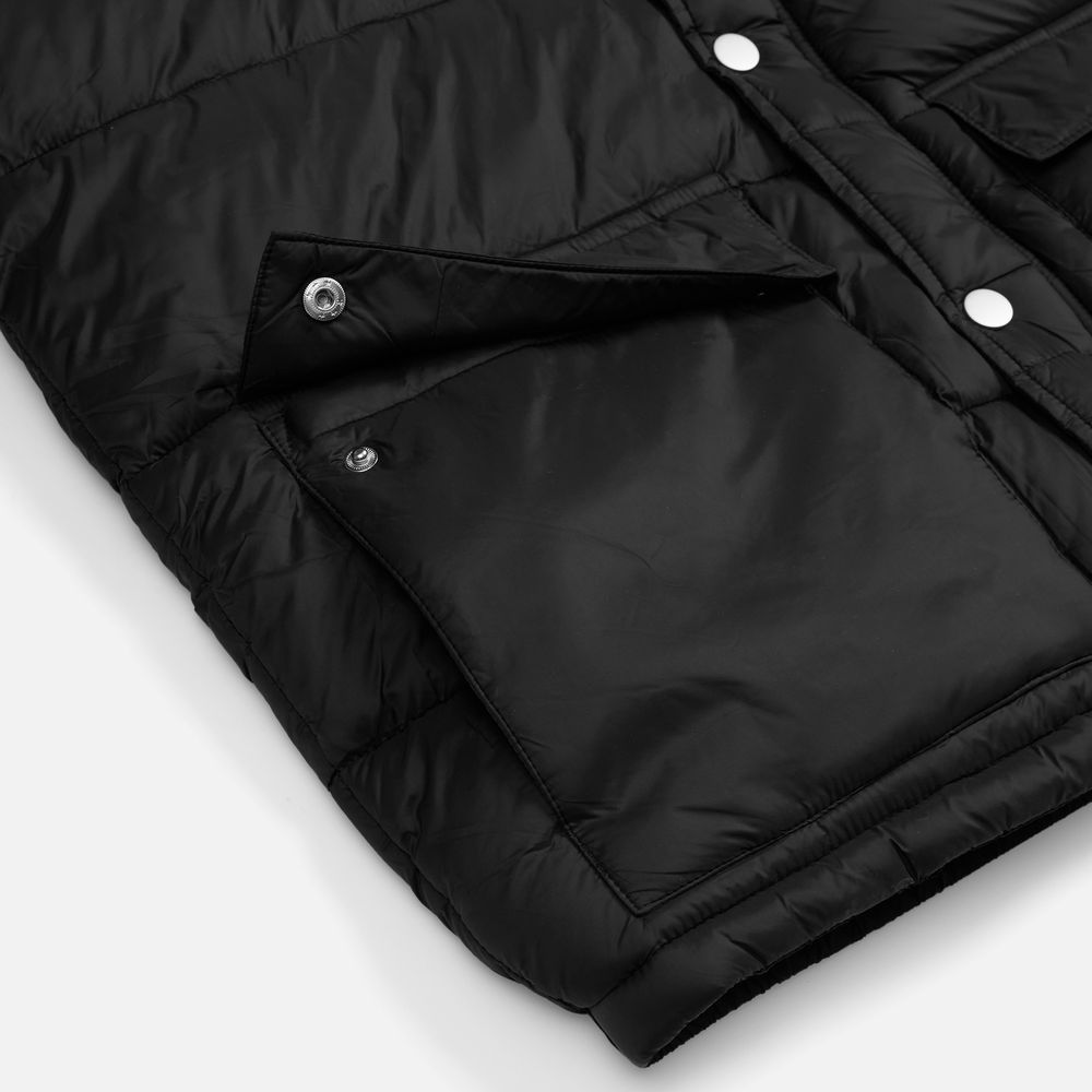 - Утепленные накладные карманы: два на кнопках с вертикальным входом и два с боковым — итого 4 кармана