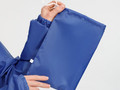 Укороченный дождевик свободного кроя из ткани таффета с влагозащитным покрытием. Складывается в мешочек — удобно брать с собой.