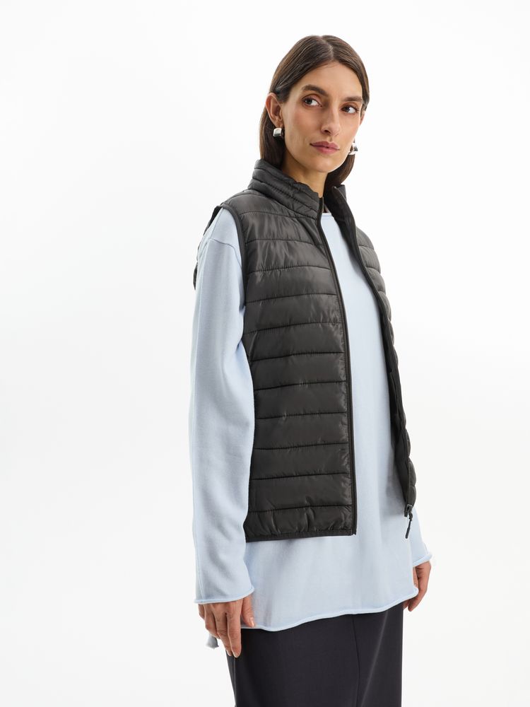 - Пройма и низ изделия обработаны эластичной бейкой в цвет изделия