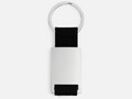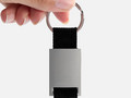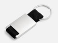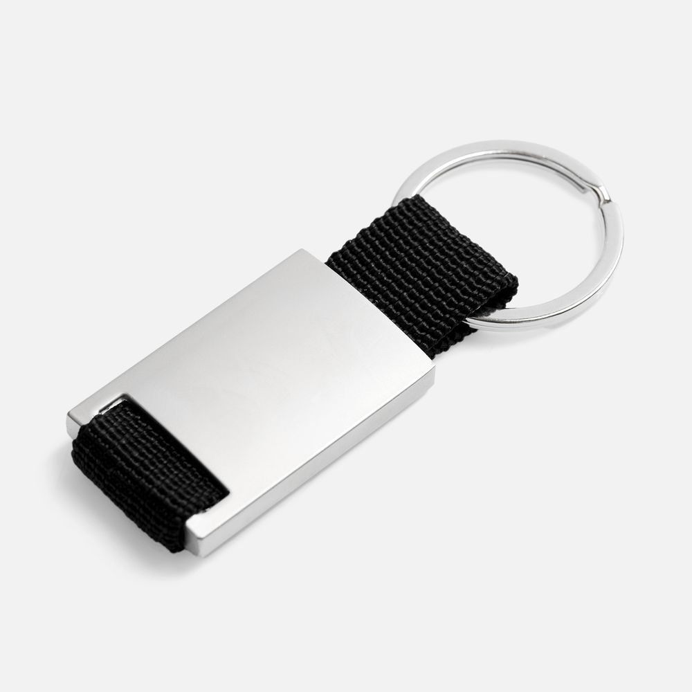 Минималистичный металлический брелок с тканевой вставкой.
