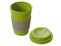 Термокружка “Muffin” изготовлена из экологически чистых материалов и на 70% состоит из натуральных бамбуковых волокон и кукурузного крахмала. Экокружка подходит как для горячих, так и для холодных напитков. Термокружку удобно и безопасно держать в руках, для этого на корпусе предусмотрена силиконовая манжета. При необходимости она может сниматься. Крышка содержит отверстие для питья, через которое удобно употреблять свой любимый напиток. Кружка не содержит бисфенол А и другие вредные примеси. Объем - 450 мл.