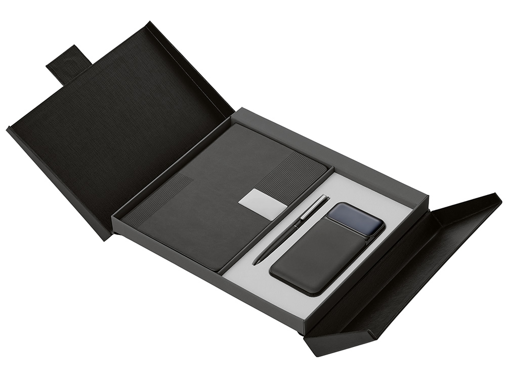 Подарочный набор в элегантной коробке на магните —это практичный и красивый подарок, который точно пригодится в жизни. Внутри блокнот на 96 листов плотной бумаги 80 г/м² с FSC-сертификатом, металлическая шариковая ручка с синими немецкими чернилами Dokumental и швейцарским узлом Premec. Пауэрбанк на 10 000 mAh с 3 видами кабелей: Lightning, Type-C и USB обеспечит заряд в любой ситуации. Гравировка (CO2 лазер) (Без чернения) на данный товар осуществляется бесплатно. Оплачивается только настройка оборудования в размере 2700 рублей на весь тираж.
