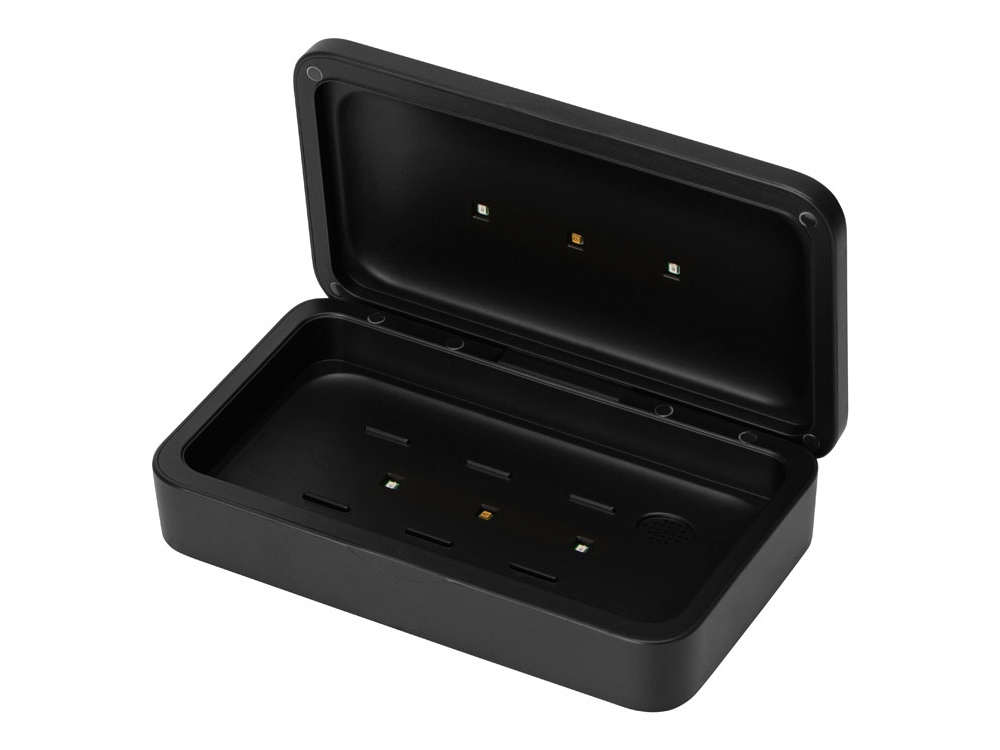 Универсальный стерилизатор эффективно уничтожает 99,9% вирусов и бактерий со всех поверхностей помещенных в него предметов. Подходит для стерилизации смартфонов, часов, наушников, ключей, масок, канцелярии и других небольших вещей. Стерилизатор «Sector» работает от USB, источником может быть ноутбук, ПК, сетевой адаптер или внешний аккумулятор (повербанк). Чтобы начать процесс дезинфекции достаточно положить предметы внутрь, закрыть крышку и нажать кнопку. Отсек для стерилизации 19,2 х 10 х 1,2 см. Стерилизация автоматически завершится через 5 минут. УФ-стерилизатор оснащен автоматической системой безопасности – УФ-лампы отключаются при открытии крышки. В центре крышки расположен модуль беспроводной зарядки. Чтобы активировать функцию ароматерапии - просто добавьте 2-3 капли эфирного масла в ячейку аромадиффузора.