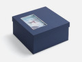 Коробка из переплетного картона, кашированного синей дизайнерской бумагой.