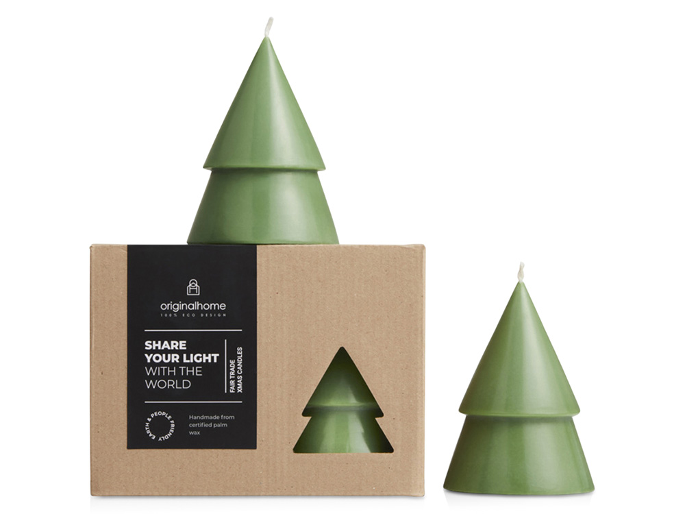 Свеча без запаха в виде елки среднего размера от Originalhome на 100% натуральная и изготовлена вручную из сертифицированного пальмового воска. Это идеальный рождественский подарок для всех, с кем хочется поделиться светом и теплом. Свеча горит примерно 15-17 часов.