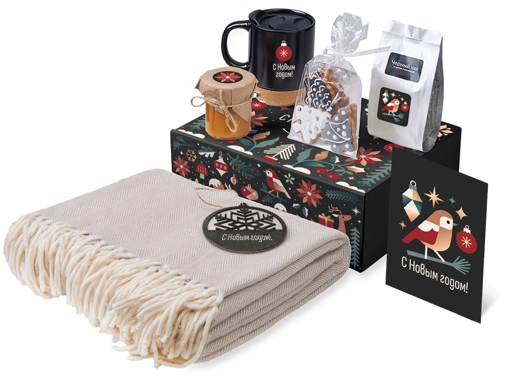 Подарочный набор c пледом, кружкой и вареньем, черный