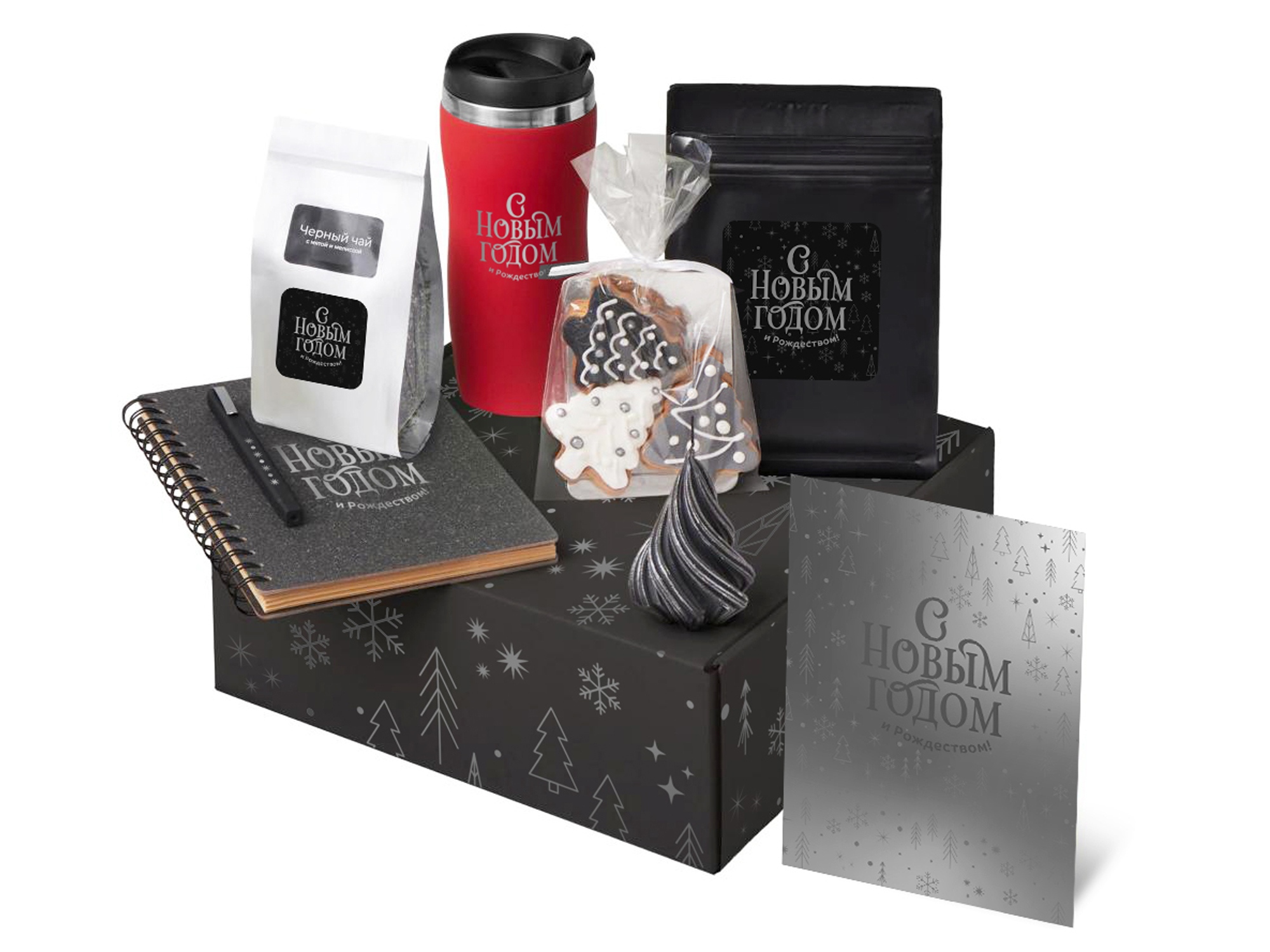 Набор «Re:Charge» — о том, чтобы наполниться энергией и бодростью. Решите, что сегодня согреет вас больше — чай или кофе, и заварите его с удовольствием. Ароматическая свеча в форме ёлки наполнит пространство теплом, праздничной атмосферой и запахом зимнего леса. Вдохните аромат, дайте себе паузу и прислушайтесь к своим ощущениям. Блокнот станет вашим личным дневником, местом для идей или рабочим блокнотом в новом году — ведь начинать с чистого листа всегда приятно. А имбирные пряники добавят сладкую нотку уюта и напомнят: даже в привычных днях можно находить тепло и вдохновение. Этот набор превращает обычный день в маленький ритуал перезарядки и вдохновения.