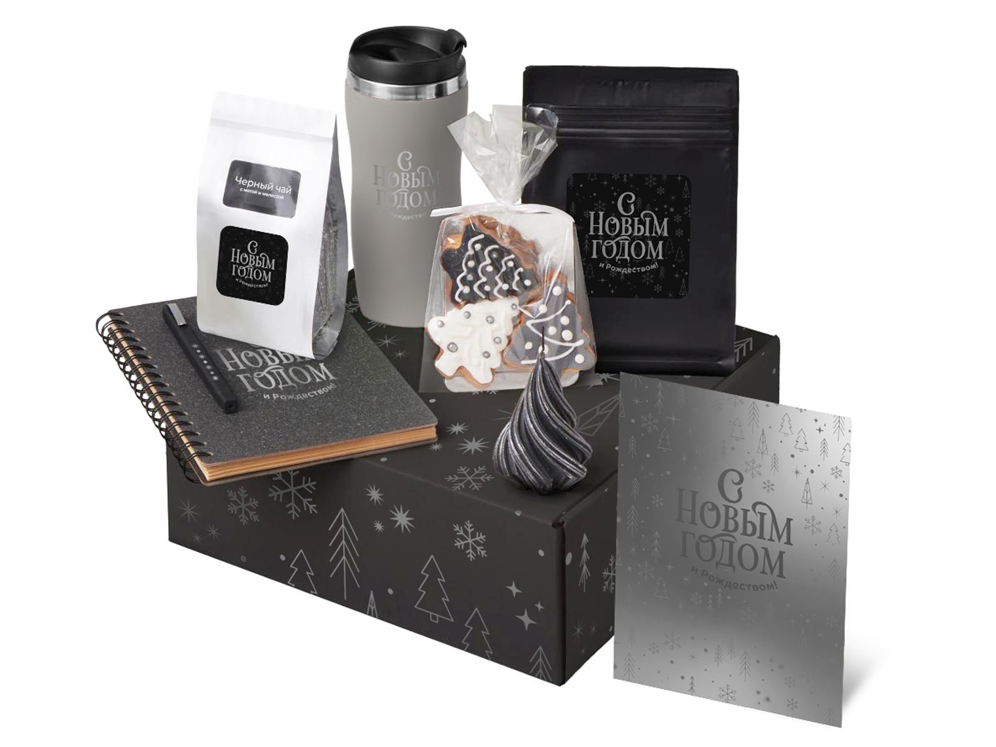 Подарочный набор c термокружкой, чаем, кофе и блокнотом, серый