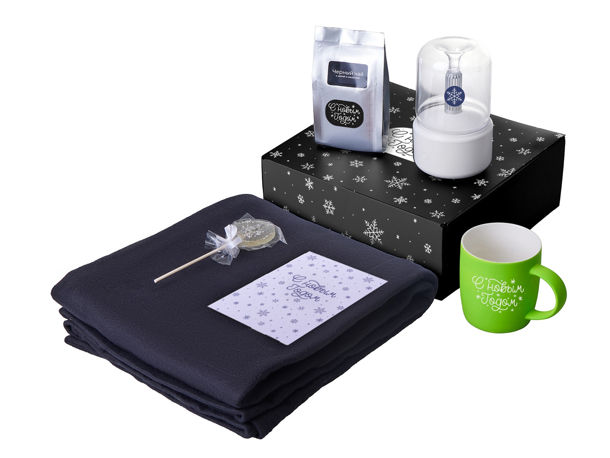 Подарочный набор с пледом, увлажнителем и кружкой, зеленое яблоко