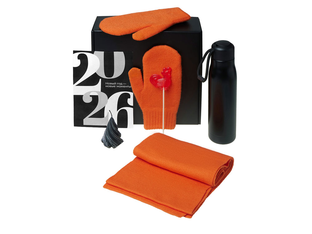 Подарочный набор с варежками, шарфом и термосом, оранжевый