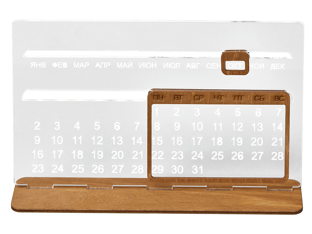Вечный календарь Evermore 210х127 мм: фанера 3 мм, орг стекло 4 мм, упаковка в плотный крафт конверт