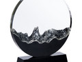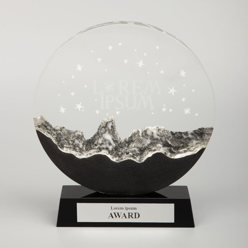 Прозрачная круглая часть и черное основание стелы изготовлены из премиального стекла К9, в основе которого лежит оптическое боросиликатное стекло. Эту марку стекла отличает низкий процент посторонних включений, высокий показатель преломления и высокая прозрачность — идеальные качества для изготовления наград премиального уровня.