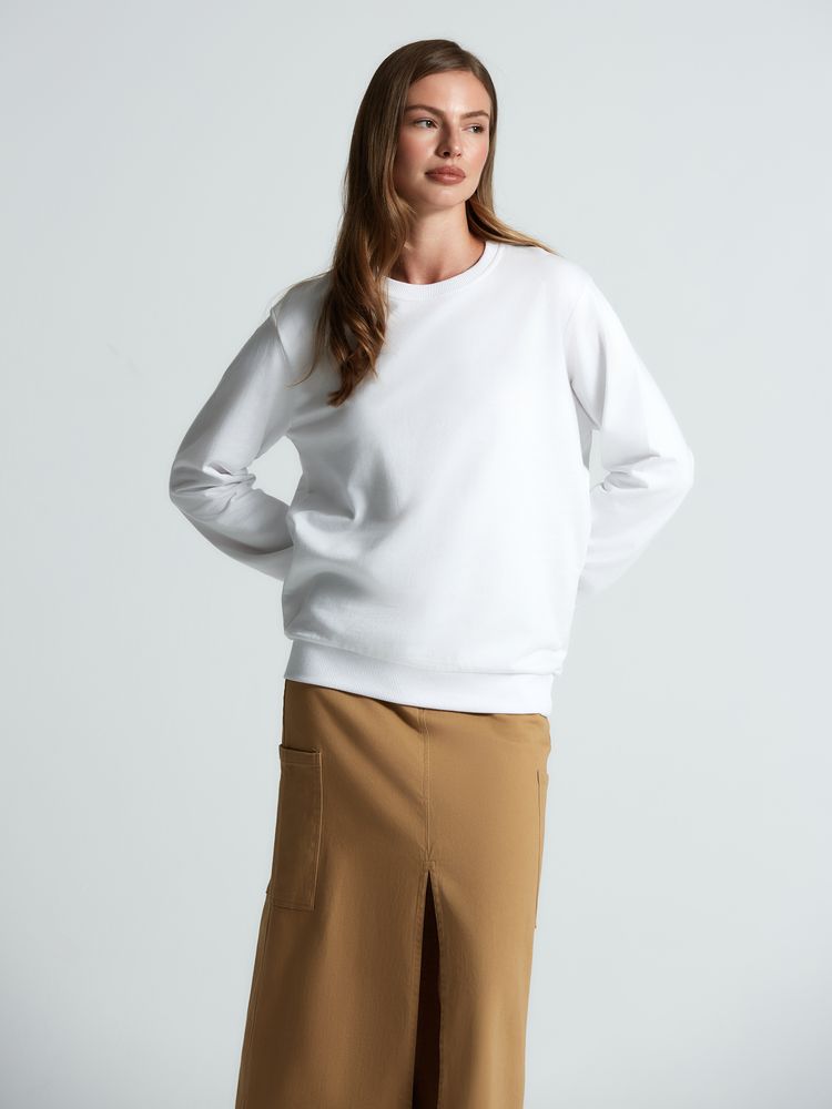 Легкий базовый свитшот унисекс. В шве горловины — только бирка с размером, что позволяет вам нанести свой логотип, а также расширяет возможности кастомизации.