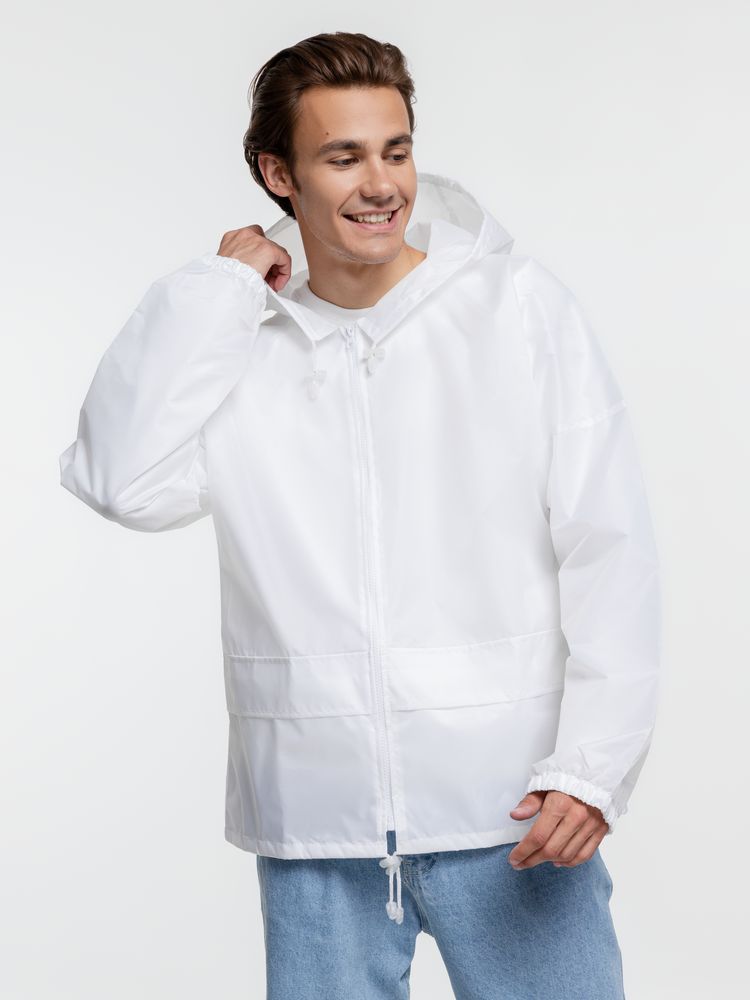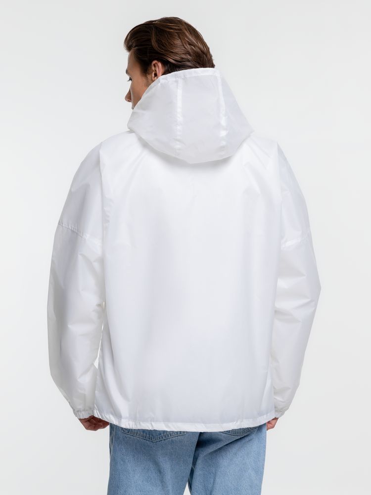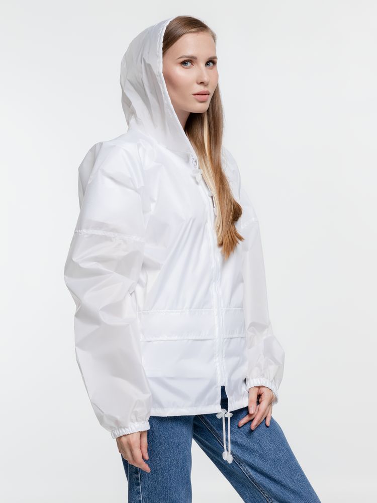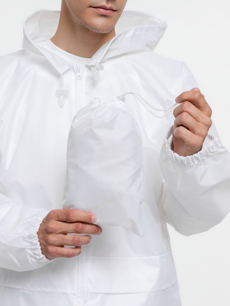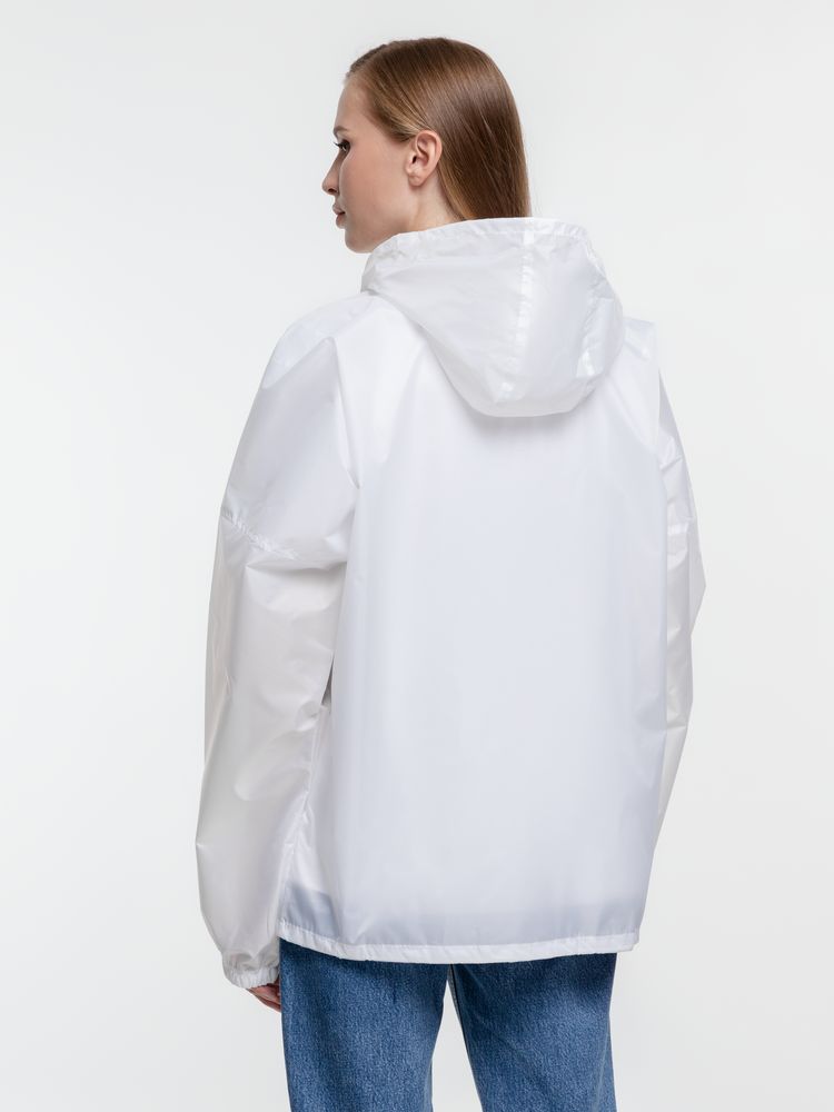 Укороченный дождевик свободного кроя из ткани таффета с влагозащитным покрытием. Складывается в мешочек — удобно брать с собой.