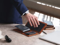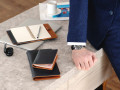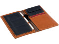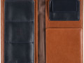 Чтобы передать этот удивительный контраст, для изделий Kalsa Palermo была выбрана гладкая натуральная кожа: глубокого синего цвета снаружи и светло-коричневого оттенка внутри. Оформленные в едином стиле, они легко собираются в подарочные наборы.