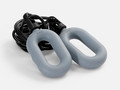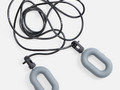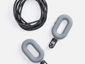 Шнур к ручкам-эспандерам крепится через пластиковый переходник с отверстиями для продевания шнура. Эспандеры выполнены из тактильно приятного силикона, обладающего высокой степенью эластичности и прочности, а широкий шнур (5 мм) — из плотного ПВХ.