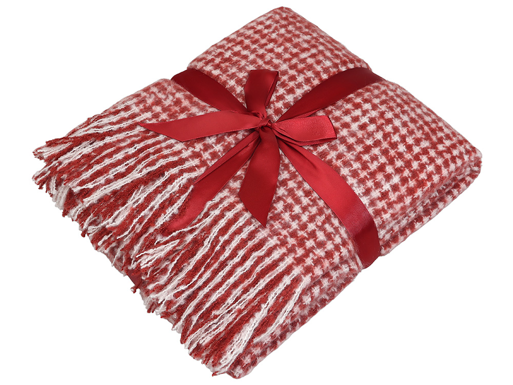 Супер мягкий и теплый плед согреет в холодный день и украсит ваш интерьер. По бокам плед украшен бахромой. В комплекте бордовая лента, на которой можно нанести ваш логотип. Термотрансфер (1 цвет (белые изделия)) на данный товар осуществляется бесплатно. Оплачивается только настройка оборудования в размере 8200 рублей на весь тираж.