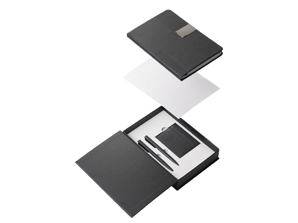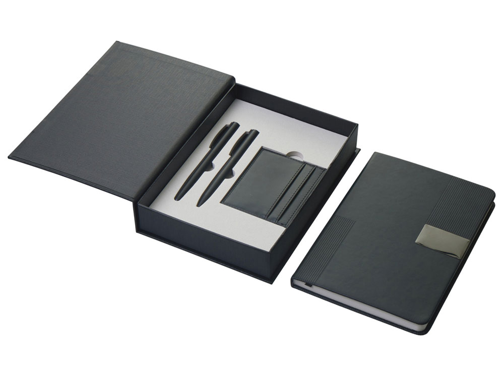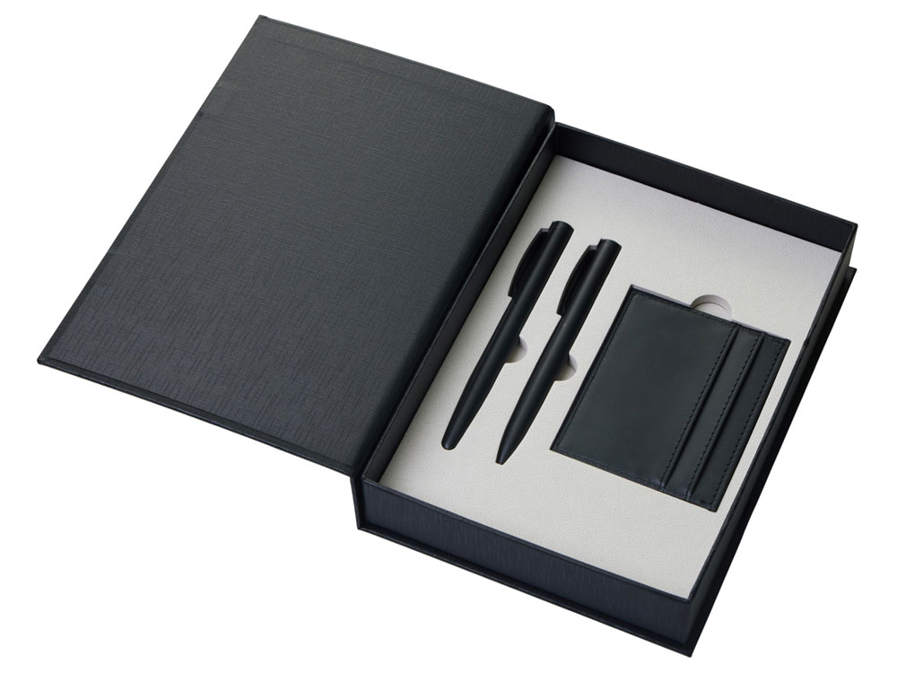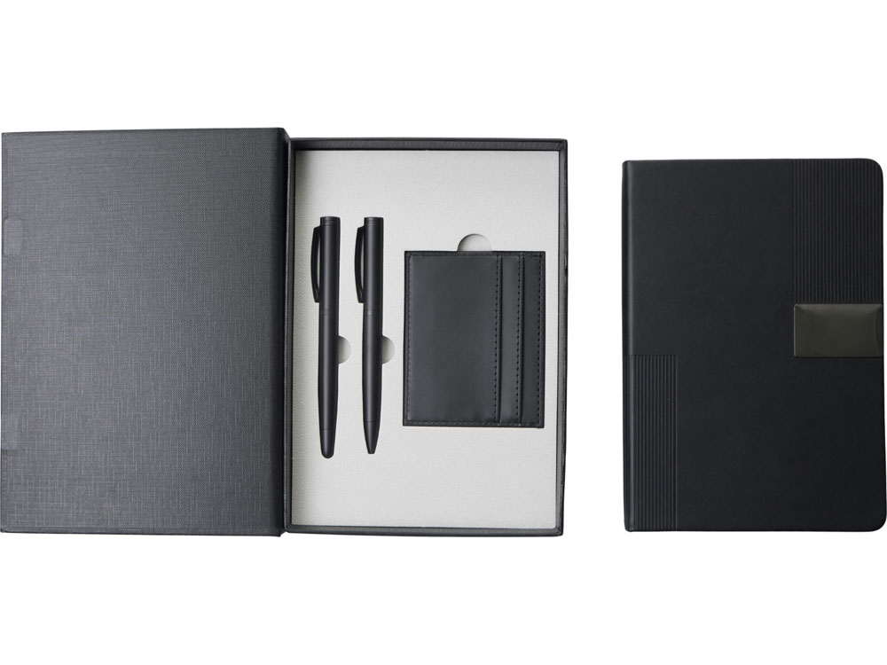 Подарочный набор "Goethe" с блокнотом А5, 2-мя ручками и картхолдером, черный