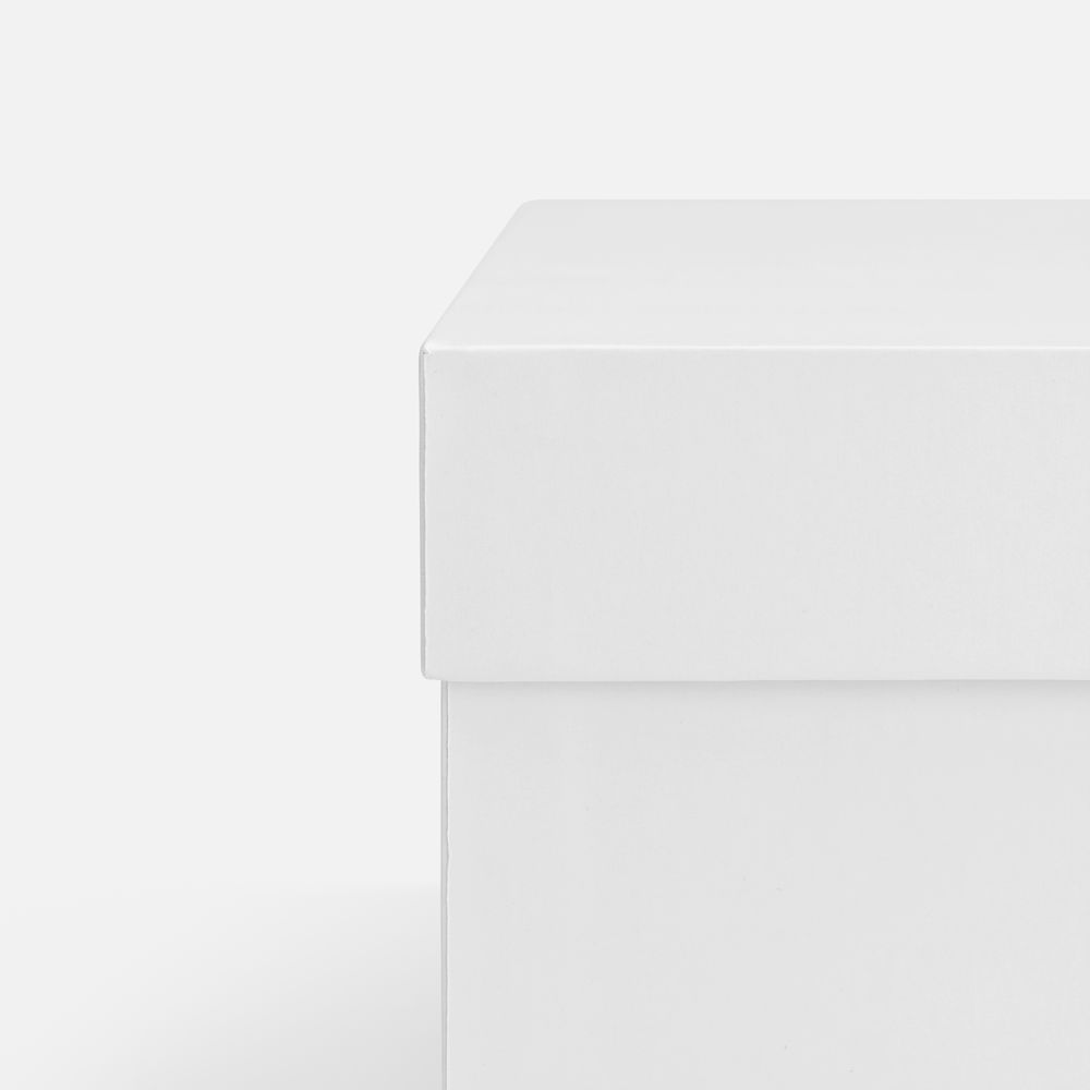 Коробка изготовлена из переплетного картона, кашированного дизайнерской бумагой.
