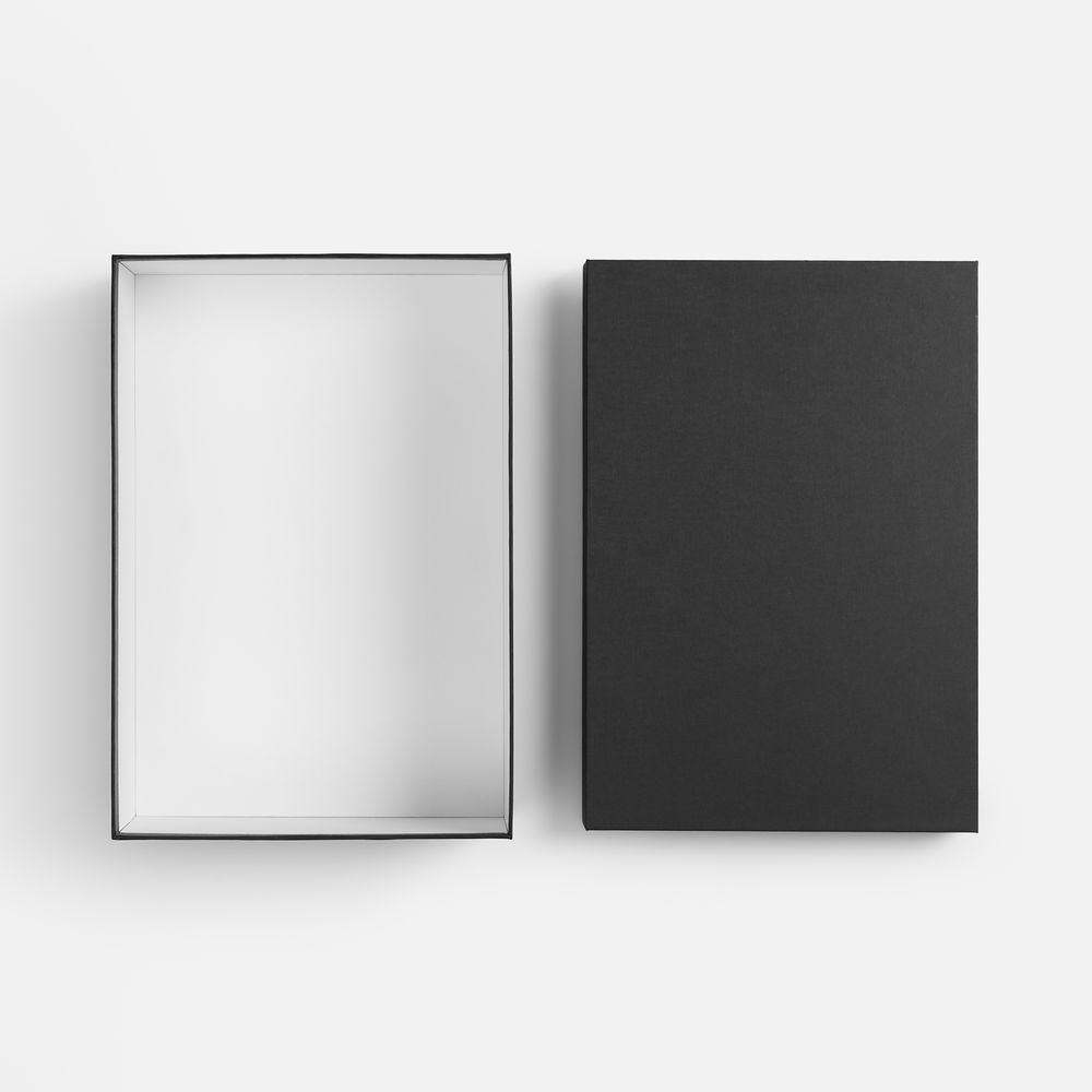 Коробка изготовлена из переплетного картона, кашированного дизайнерской бумагой.