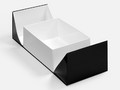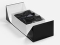 Коробка из переплетного картона 2 мм с оригинальной конструкцией: две симметричные створки открываются, создавая эффектную презентацию содержимого. Складная система на предустановленный двусторонний скотч делает сборку коробки быстрой и интуитивно понятной.