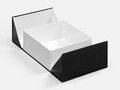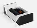 Коробка из переплетного картона 2 мм с оригинальной конструкцией: две симметричные створки открываются, создавая эффектную презентацию содержимого. Складная система на предустановленный двусторонний скотч делает сборку коробки быстрой и интуитивно понятной.