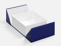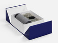 Коробка из переплетного картона 2 мм с оригинальной конструкцией: две симметричные створки открываются, создавая эффектную презентацию содержимого. Складная система на предустановленный двусторонний скотч делает сборку коробки быстрой и интуитивно понятной.