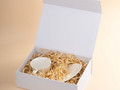 Коробка из переплетного картона, кашированного тисненой тонированной в массе бумагой, с крышкой на магните.
