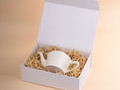 Коробка из переплетного картона, кашированного тисненой тонированной в массе бумагой, с крышкой на магните.
