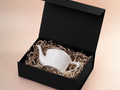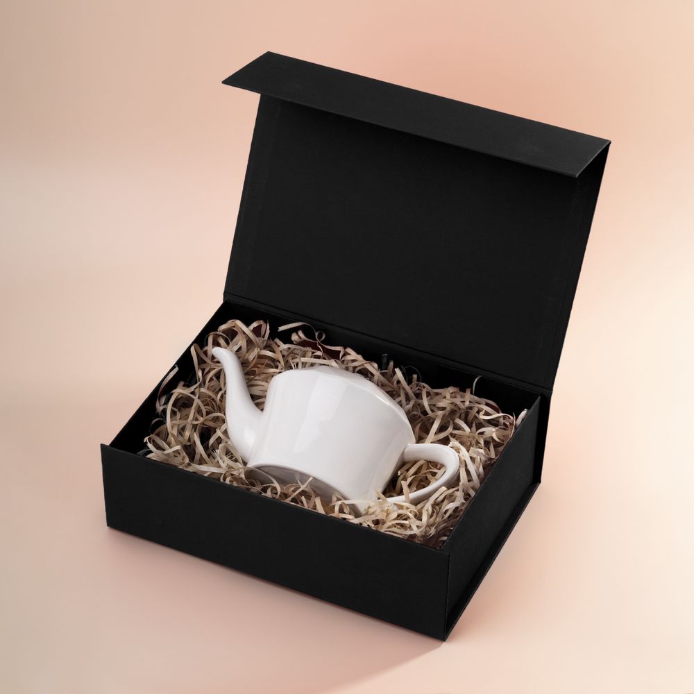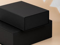Коробка из переплетного картона, кашированного тисненой тонированной в массе бумагой, с крышкой на магните.